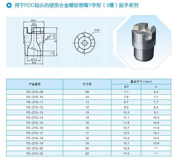 Used for PDC bit carbide threading nozzle Y slot (3) wrench series