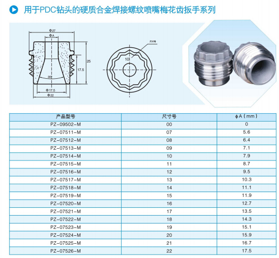 PDC drill bits nozzle double offset ring spanner